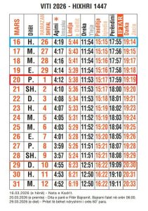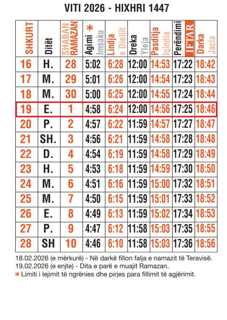 Dita nis me syfyrin, vakti para agimit, ndërsa në mbrëmje agjërimi hapet me iftarin, shpesh me hurma dhe ujë, sipas traditës. Më pas vijojnë faljet e natës dhe lutjet shtesë, të njohura si teravi.